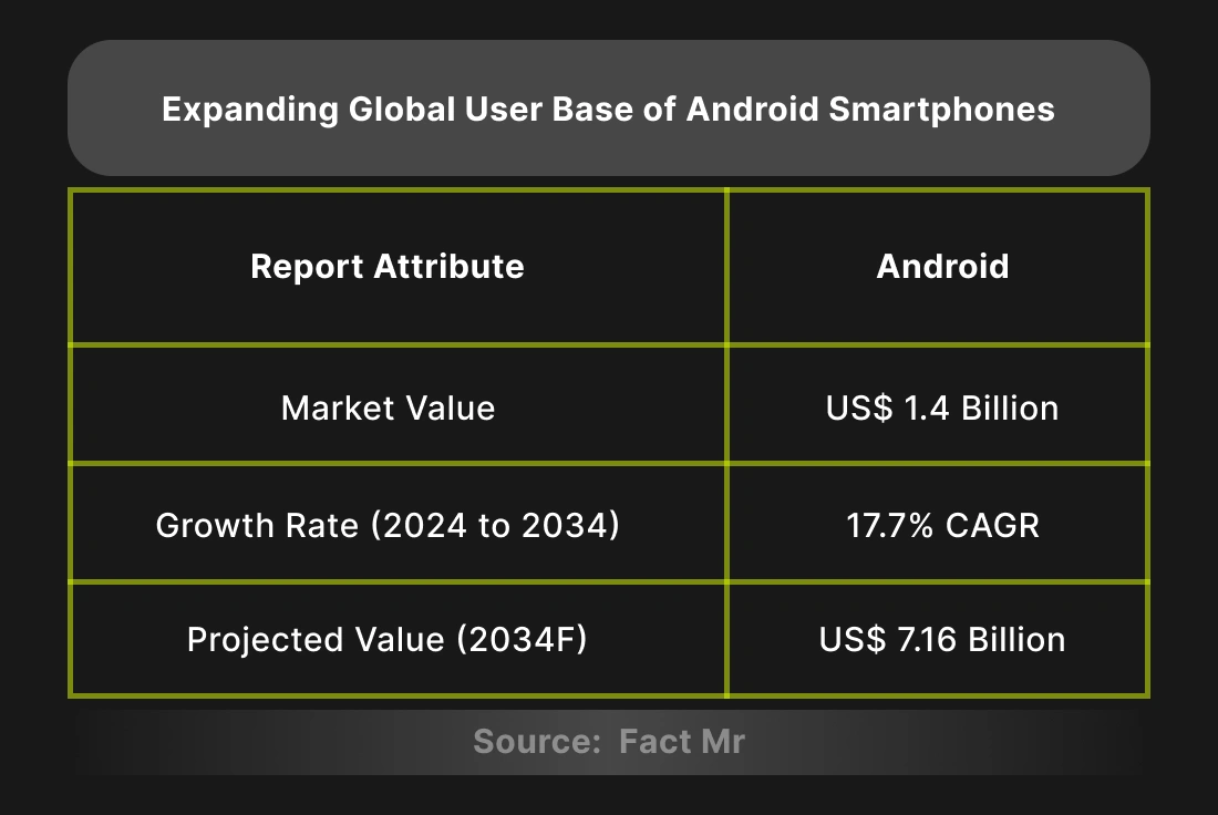 Global demand for Android-based fitness apps is expected to grow 17.7% CAGR to US$7.16