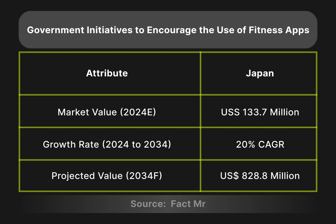 Asian market share will be 29.4% by 2034. The government is promoting fitness apps through